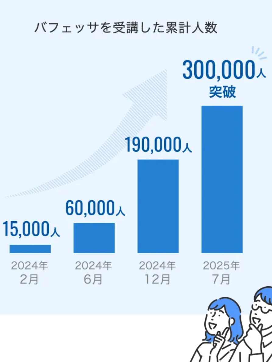 分かりやすさと手軽さから今や30万人以上がバフェッサを受講してるんだよね😍