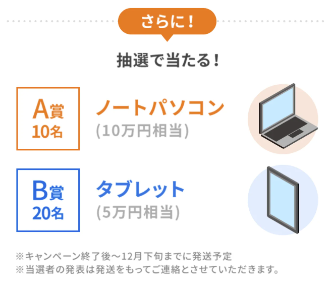 なんと、ノートPCまたはタブレットが抽選で当たるチャンスも🎯 いとのフォロワさんもこれまでノートPCや、タブレット、純金や本など いろんなものが当たった報告もらってるよ😍