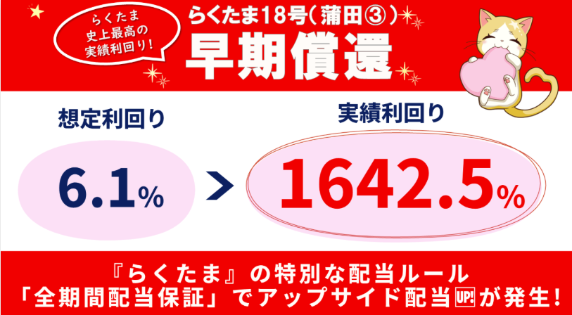 - 想定6ヶ月・利回り6% → 実際2ヶ月で終了