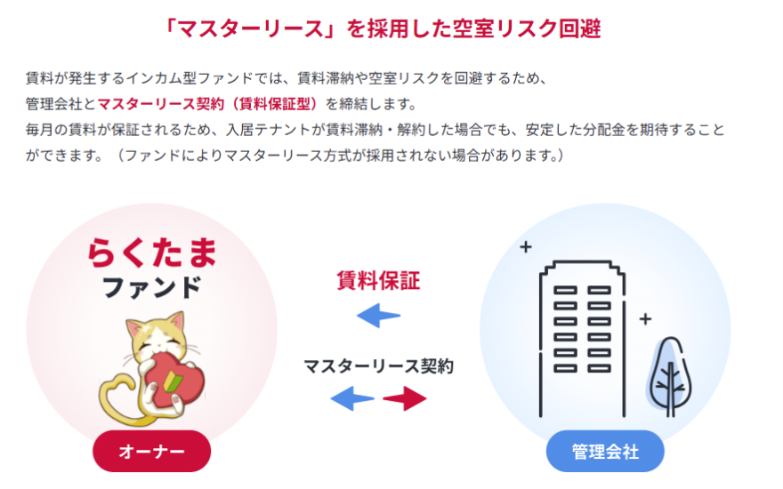 でもマスターリースを結んでおくと、入居者がいなくても管理会社が家賃を保証してくれるから、配当が安定して入るの。