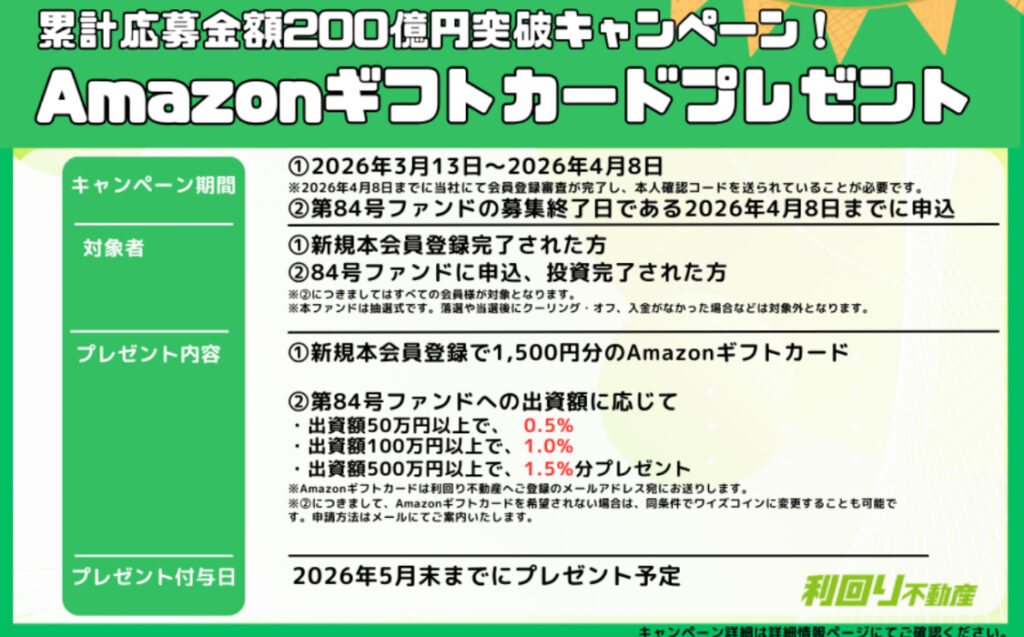 第84号ファンドへの出資額に応じてアマギフが最大1.5%もらえる!