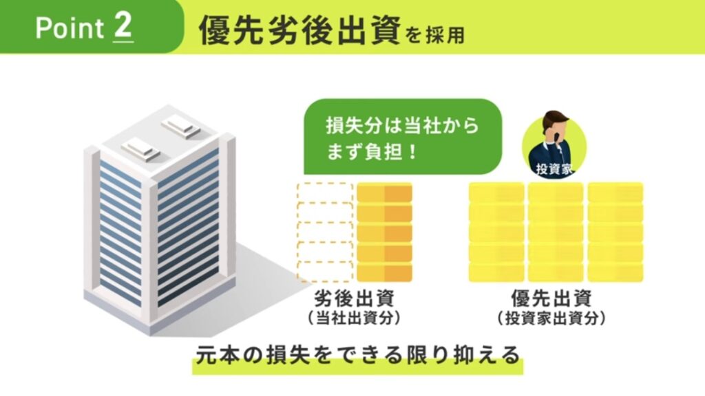 ✔ 優先劣後出資で守りの仕組みがある